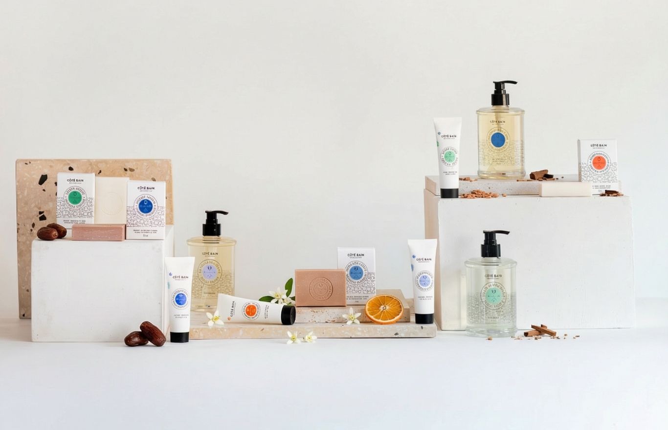 Côté Bain propose des essentiels de soin, savon solide, savon liquide et crème pour les mains, formulés à partir d’ingrédients d’origine naturelle, aux textures délicates et aux parfums subtils, pour transformer chaque geste du quotidien en un rituel de bien-être.